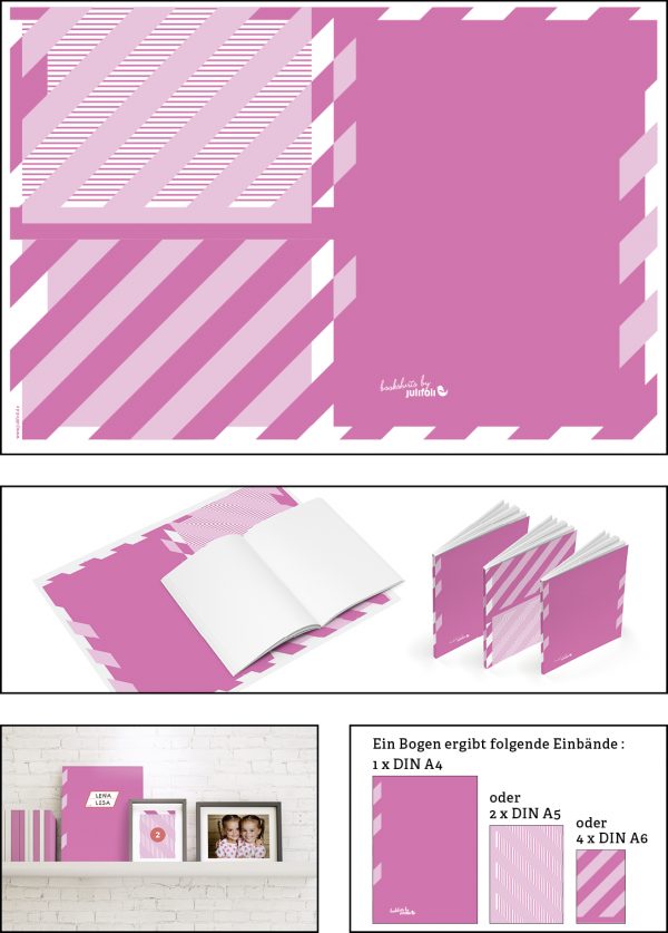 Mit den bookshirts von JuliFoli lassen sich Hefte und Bücher kreativ einbinden und schützen. Die fröhlichen Designs vereinfachen das Falten; es gibt sie in acht Lieblingsfarben, die einzeln auswählbar und bestellbar sind.
