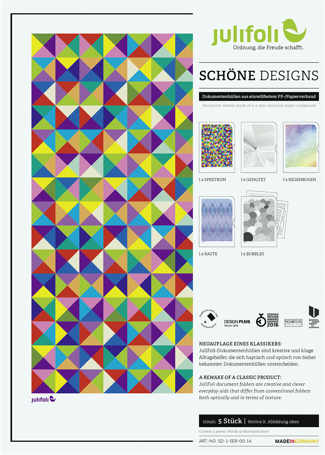 Die Serie Schöne Designs reagiert blitzschnell auf Trends. Unsere aktuellen Designs: Spektrum, Gefaltet, Regenbogen, Raute, Bubbles.