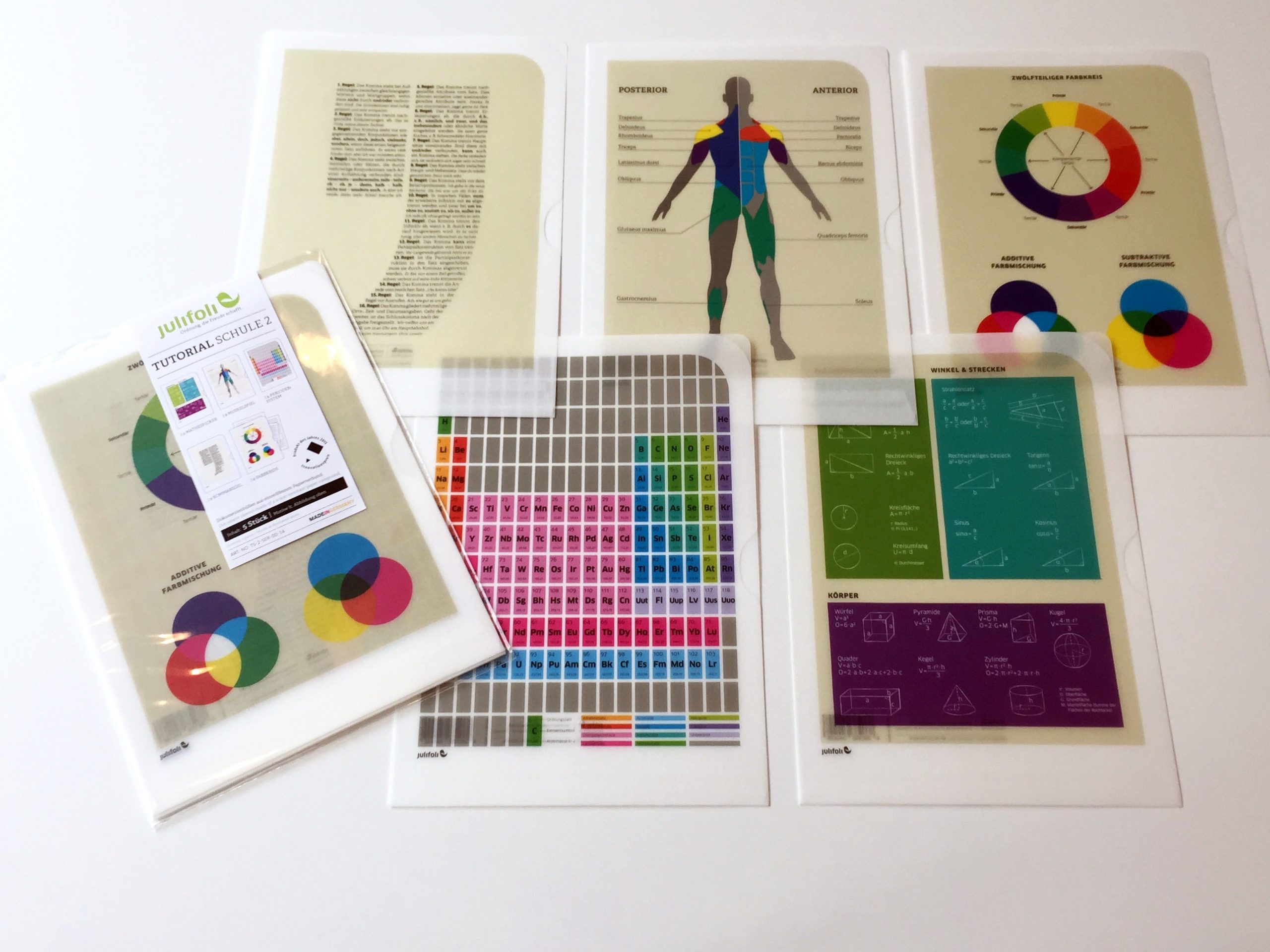 Die TUTORIAL Serien liegen uns besonders am Herzen: Die Serie Tutorial Schule 2 hält mit Kommaregeln, Mathespicker, Periodensystem, Farbkreis und den Muskeln des Menschen auch für den Alltag von uns Erwachsenen so manche “Erfrischung” bereit.