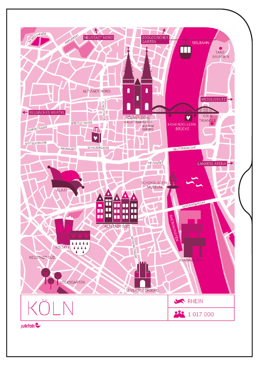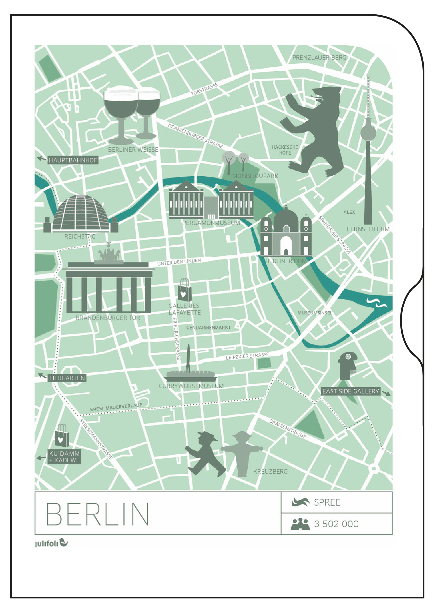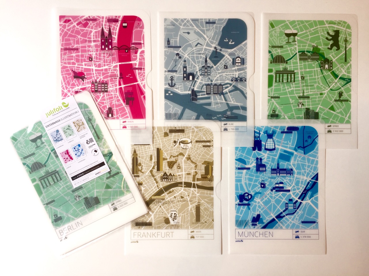 Wegweisend sind die neuen Dokumentenhüllen mit stylischen Stadtplan-Illustrationen. Die Serie UNTERWEGS Illustration 1 ist, mit einer Auswahl unserer deutschen (Lieblings-)Städte, perfekt für den Kurztripp oder als Geschenk für echte „Großstadtpflanzen“. Die Serie beinhaltet die Städte Hamburg, Frankfurt, Köln, Berlin, München.